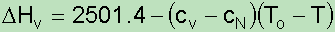 λανθάνουσα θερμότητα εξάτμισης του νερού σε kJ/kg