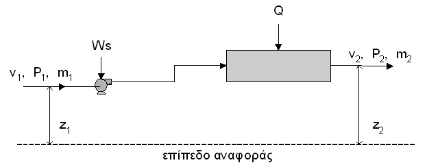Εξίσωση ενέργειας Ενέργεια που εισέρχεται - ενέργεια που εξέρχεται ± θερμότητα που προστίθεται ή αφαιρείται ± έργο που παράγεται από ή προς το σύστημα (Ws + PV) = ρυθμός μεταβολής της ενέργειας του συστήματος