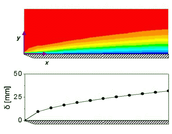 Το πάχος του οριακού στρώματος αυξάνεται με την τετραγωνική ρίζα της απόστασης από αρχή της πλάκας