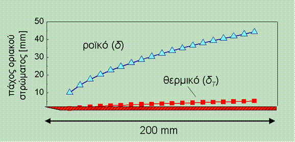 το ροϊκό οριακό στρώμα αυξάνεται ταχύτερα από ότι το θερμικό