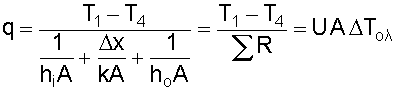 Το U ονομάζεται ολικός συντελεστής μεταφοράς θερμότητας, W/m2oC