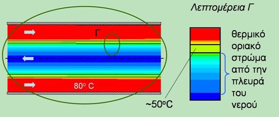 Διάγραμμα κατανομής θερμοκρασιών κατά μήκος της διατομής
