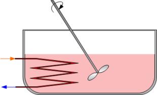 Θέρμανση ή ψύξη ενός υγρού σε ένα δοχείο υπό ανάδευση, π.χ. θέρμανση ή ψύξη υγρού σ' ένα δοχείο με διπλά τοιχώματα ή με σερπαντίνα