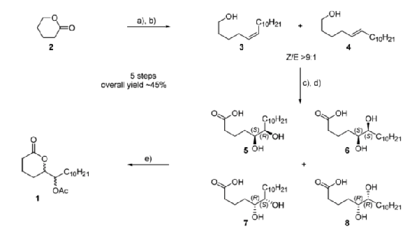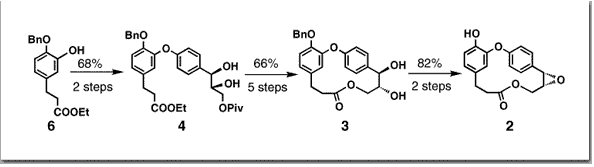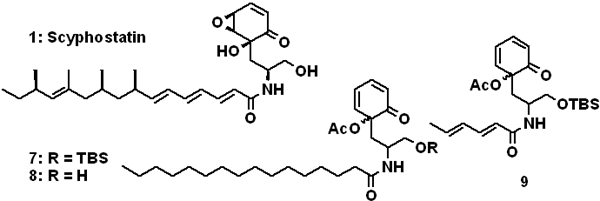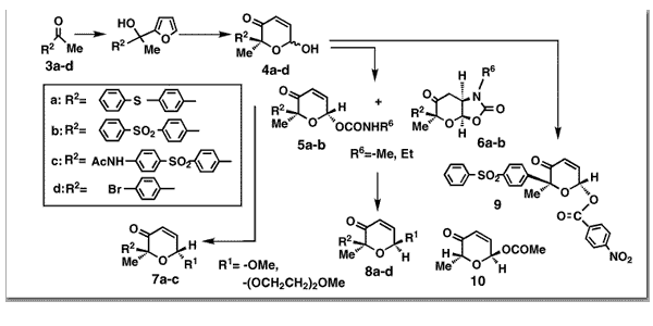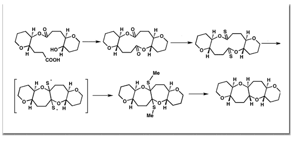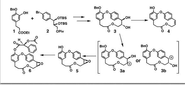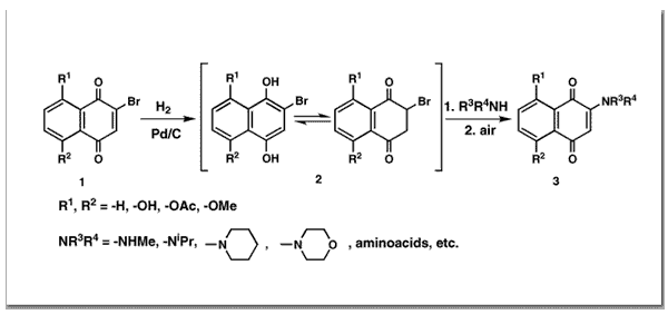 | | 1. A Short Biomimetic Approach to the Fully Functionalized Bicyclic Framework of Type A Acylphloroglucinols. Dakanali, M.; Demadis, K. D.; Vidali, V. P.; Couladouros, E. A.Org.Lett.11(19),4430-4433,2009.[Project infos] |  | | Abstract: A biomimetic approach towards type A polyprenylated acylphloroglucinols (PPAPs) is described. The method is based on a C-alkylation – cation cyclization reaction sequence, leading to a convenient build-up of molecular complexity, employing the simple and readily available deoxycohumulone and an appropriately functionalized hydroxy-halide. Thus, a versatile construction of the fully functionalized bicyclic framework of type A PPAPs (5) was achieved | | | 4. Larvicidal activity of naturally occurring naphthoquinones and derivatives against the West Nile virus vector Culex pipiens. Michaelakis, A.; Koliopoulos, G.; Strongilos, A. T.; Bouzas, E. A.; Couladouros, E. A.Parasitol. Res.104,657-662,2009.[Project infos] |  | | Abstract: Concentration-dependent mortality effects were observed for three pure synthetic natural products (alkannin, shikonin, and shikalkin) and three acetylated derivatives of shikonin against Culex pipiens (Culicidae: Diptera) for the first time. The larvicidal properties of all naphthoquinones were evaluated under laboratory conditions against the larvae of the mosquito species C. pipiens biotype molestus, the anthropophilic biotype of the C. pipiens mosquito species. Experimental data of the tested toxicity of quinones revealed generally high efficacy where shikonin (3.9 mg/L) was the most active followed by shikalkin (8.73 mg/L) and alkannin (12.35 mg/L). The insecticidal performance of shikonin-acetylated derivatives was also investigated, aiming at the same time in the establishment of the relationships between the structure and the activity of shikonin-type compounds with larvicidal activity against C. pipiens. Results indicated that naphthoquinones, compared with other natural compounds with larvicidal activity, are very toxic against mosquito larvae and could be a potential source of natural larvicidal substances. Finally, bioassays with shikonin derivatives also revealed that although hydroxylic groups seem to play a secondary role in efficacy, the quinone moiety is essential | | | 5. Open-chain half-bastadins mimic the effects of cyclic bastadins on calcium homeostasis in cultured neurons. Zieminska, E.; Lazarewicz , J. W.; Couladouros, E. A.; Moutsos, V. I.; Pitsinos, E. N.Bioorg. Med. Chem. Let.18,5734-5737,2008.[Full Article][Project infos] |  | | Abstract: Constraining the catechol aryl ether moiety of bastadins by incorporation into a macrocycle is not necessary in order to mimic the effects of these marine natural products on neuronal calcium homeostasis. Simple, acyclic analogs that embody the ‘western’ or ‘eastern’ parts of bastadins were found to evoke comparable responses with bastadin 5. | | | 6. Stochastic simulation studies of molecular resists. Drygiannakis, D.; Patsis, G. P.; Raptis, I.; Niakoula, D.; Vidali, V.; Couladouros, E.; Argitis, P.; Gogolides, E.Microelectron. Eng.84,1062-1065,2007.[Full Article][Project infos] |  | | Abstract: The influence of resist molecular weight as well as its architecture becomes important in lithographic scales aiming at sub-45 nm resolution. The effects of processing and resist molecular geometry on line-edge roughness (LER) should be well understood in order to meet the ITRS lithographic specifications. In this work, two-dimensional simulations and comparisons of the LER between films of molecular resists and resist films made of oligomers with the same molecular diameter, showed that in all cases molecular resists have lower LER. Explanations of this behavior are proposed based on molecular architecture and the free volume distribution in the resist film. It was also found that the size of free volume regions is less in molecular resist than in the corresponding oligomers. | | | 7. Formal synthesis of the piperidine alkaloid (±)-prosophylline using polymer-supported dihydro-2H-pyridin-3-one. Couladouros, E. A.; Strongilos, A. T.; Neokosmidis, E.Tetrahedron Lett.48,8227-8229,2007.[Full Article] |  | | Abstract: The use of polymer-supported 2,6-disubstituted-dihydro-2H-pyridin-3-one, as the ‘polymorphic’ core molecule for the formal synthesis of the piperidine alkaloid (±)-prosophylline is presented. | | | 8. A Short and Convenient Chemical Route to Optically Pure 2-Methyl Chromanmethanols. Total Asymmetric Synthesis of b-, g-, and d-Tocotrienols. Couladouros, E. A.; Moutsos, V. I.; Lampropoulou, M.; Little, J. L.; Hyatt, J. A.J. Org. Chem.5434-5439,2007.[Full Article][Project infos] |  | | Abstract: With use of inexpensive commercially available raw materials, chromanmethanol precursors to the natural a-, a-, and a-tocotrienols have been prepared in high yield. Enzymatic resolution afforded chiral chromanmethanols in high enantiomeric excess. Subsequent attachment of the farnesyl side chain was high yielding, thus allowing the preparation of asymmetric a-, a-, and a-tocotrienols in one final step wherein simultaneous deprotection of the phenol and removal of the sulfone group occurs. This chemistry provides the first synthesis of natural-series a-tocotrienol. | | | 9. Stereostructural Determination by a Synthetic and NMR-Based Approach of Three Oxazinins Isolated from Adriatic Mussels. Ciminiello, P.; Dell’Aversano, C.; Fattorusso, E.; Forino, M.; Grauso, L.; Santelia, F. U.; Tartaglione, L.; Moutsos, V. I.; Pitsinos, E. N.; Couladouros, E. A.Eur. J. Org. Chem.5434-5439,2007.[Full Article] |  | | Abstract: Two oxazinins, namely oxazinin-5 and -6, along with a related linear precursor (preoxazinin-7) were isolated from toxic mussels collected along the Northern Adriatic coasts in October 2005. Determination of the planar structure of these novel compounds was achieved through extensive NMR spectroscopic analysis, whereas a synthetic approach was crucial for