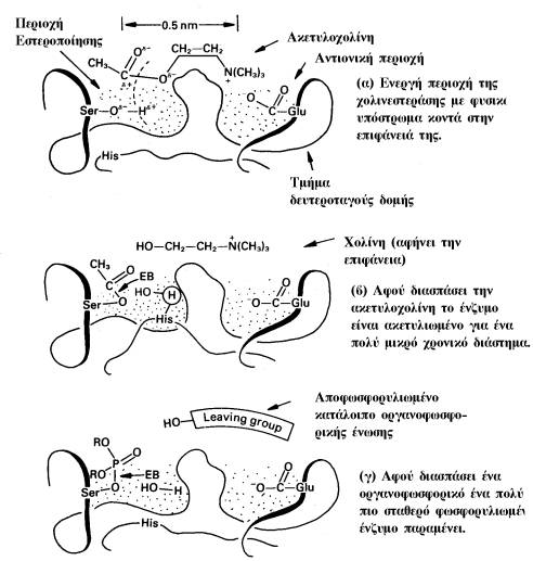 ενεργό. Έτσι οι οργανοφωσφορικές ενώσεις δρουν σαν παρεμποδιστές στην υδρόλυση
